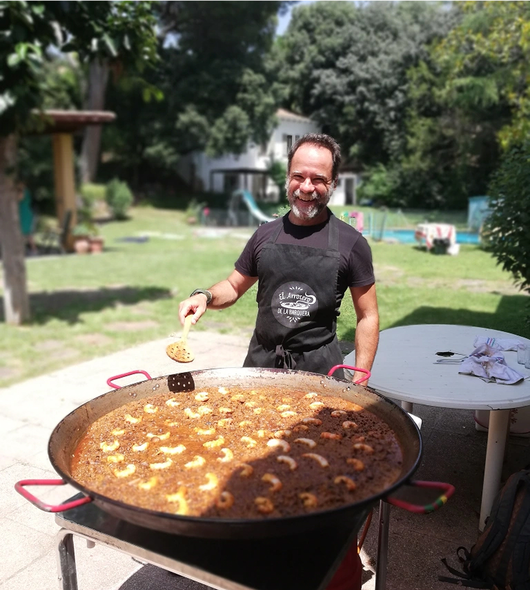 “Lo de este arrocero tiene tela, ya puede ser para ocho o para ochenta, la paella le queda de chuparse los dedos hasta la segunda Falange. Varias veces le hemos encargado paellas, una con gambones y sepia, otra de setas brutal… No falla, sea donde sea se las apaña para que te comas rico viendo tu atardecer favorito junto a tu gente”